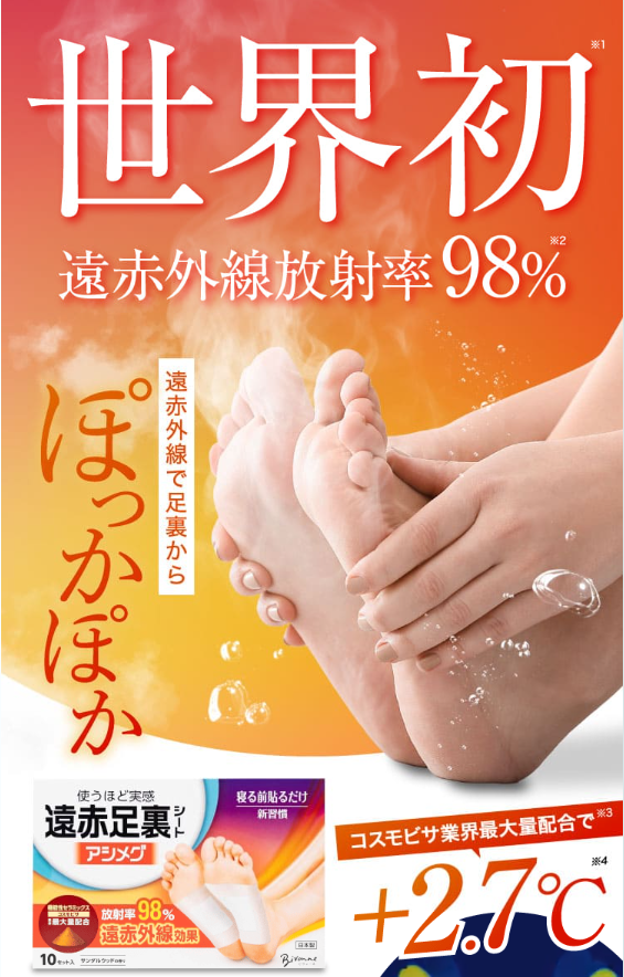 各社の足裏シートを色々調べた結果、選んだのは遠赤足裏シート アシメグ。Amazonや楽天で高評価レビューが多く、期待が高まります。