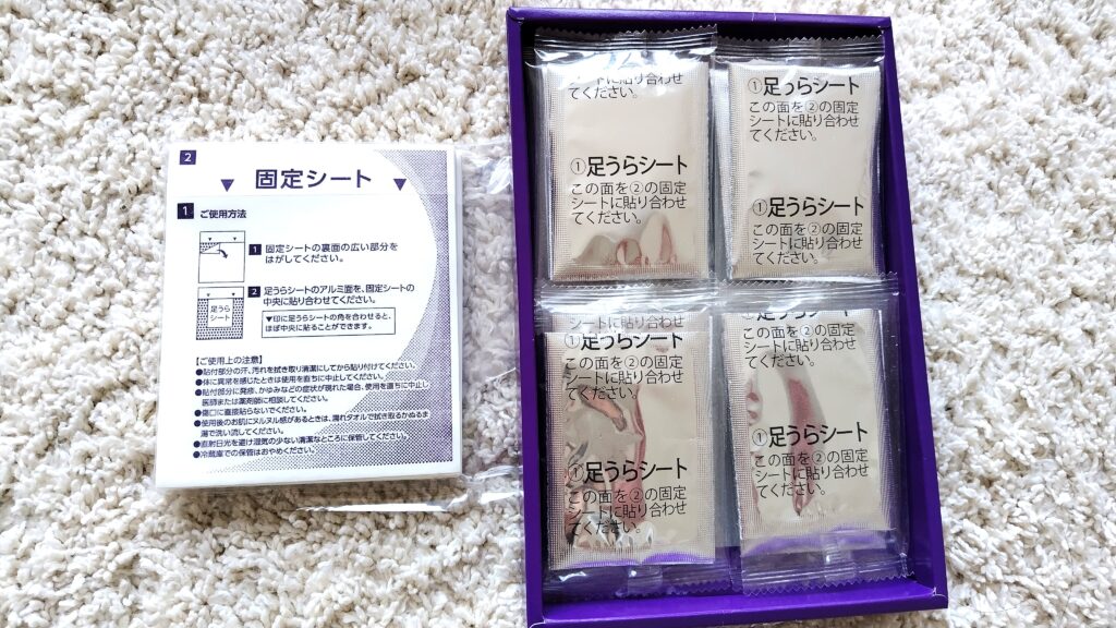 箱の中には、固定シートと足うらシートがそれぞれ10セット入っています。